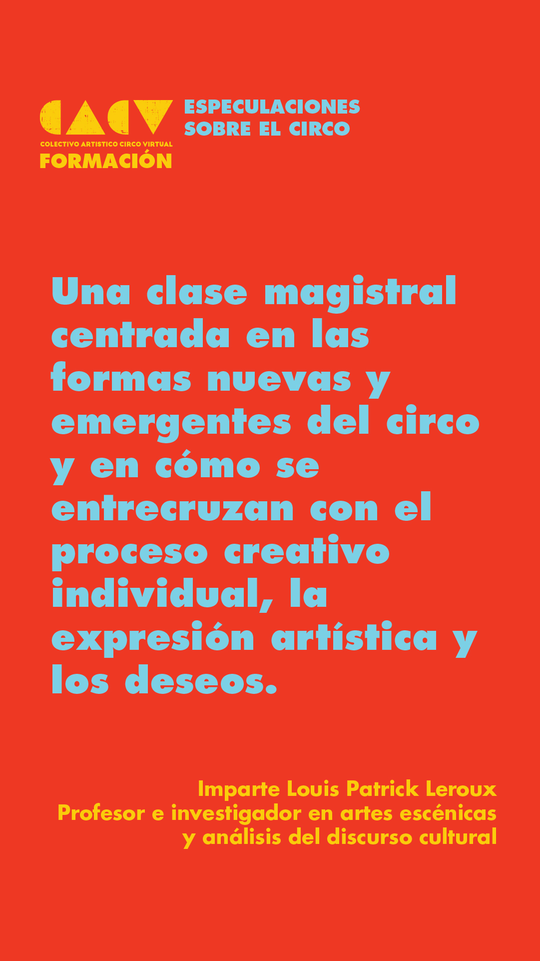 Esta clase magistral se centrará en las formas nuevas y emergentes del circo y en cómo se entrecruzan con el proceso creativo individual, la expresión artística y los deseos.