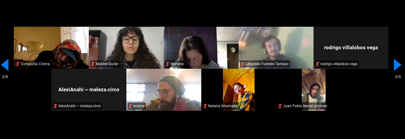 Colaboran: Teatro Bio-Bio, Centro Cultural Gam, Teatro Biobio, Festival Cielos del Infinito , Fundación Santiago Off, Espacio Checoslovaquia, Fundación Cuerpo Sur, Balmaceda Arte Joven RM, Circo Chile, Circo del sur, Circo Lacustre, Galpón Jiwasanaka Circo, Teveo Assitej Chile, Arde.